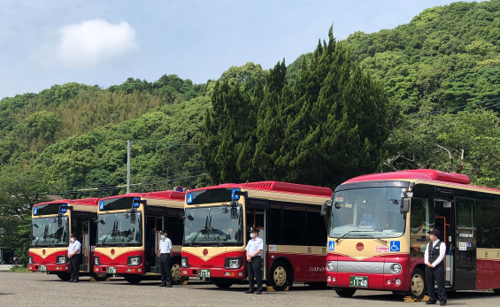 本日、祐徳自動車株式会社では、新たに路線バスを4台(運転士に異常があった際にお客様がボタンを押すことでバスが停止するドライバー異常時対応システム『EDSS』を搭載した路線バス3台含む)導入しました。EDSS搭載車は、昨年導入の貸切バス3台(エレベータ付きも含む)の搭載に続き、路線バスでの同システム導入は今回が初めてとなります。当社では、これまで先進安全技術でドライバーの運転を支援するシステムを装備した車両の導入のほか、様々な安全に関する投資を行ってまいりました。今後も「安全・安心のバスを提供する」ためにハード・ソフト両面から安全対策に取り組んでまいります。