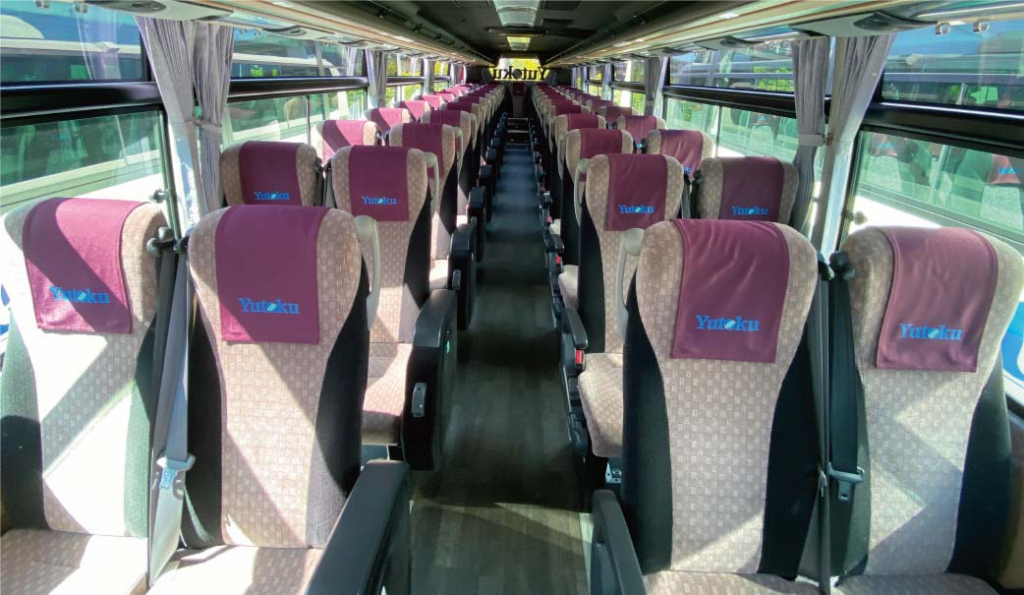 貸切バス:ハイデッカー48ワイドシート 貸切バス部 貸切バスラインナップ お見積もり バスツアー よくある質問 営業所紹介 祐徳自動車貸切バス部の車輌ラインナップのご紹介 ワイドシートでゆったりバスの旅 定員:48名 あらゆる旅のニーズに対応する。確かな機能性と装備。※高速道路は特大料金です。 ■全長/12m ■正席/48 バスの特徴 ・定員48人! 大勢の団体様でも1台でOKです。・貸切なので移動中は自由。お酒や会話を楽しんだり、ゆったりできます。・大きな窓からの眺めが抜群で、乗り心地も快適です。・設備充実! ハンディカラオケ、テレビ、DVDでバスの旅を満喫できます。・大型トランクも備えているので、お荷物なども楽々収納できます。・あらゆる旅のニーズに対応する。確かな機能性と装備。 ※高速道路は特大料金です。 充実機能 ※一部のバスには装備していない場合があります。 座席表 座席表 ダウンロード( pdfファイル )