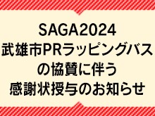 SAGA2024武雄市PRラッピングバスの協賛に伴う感謝状授与のお知らせ   いつも、祐徳バスをご利用いただきまして誠に