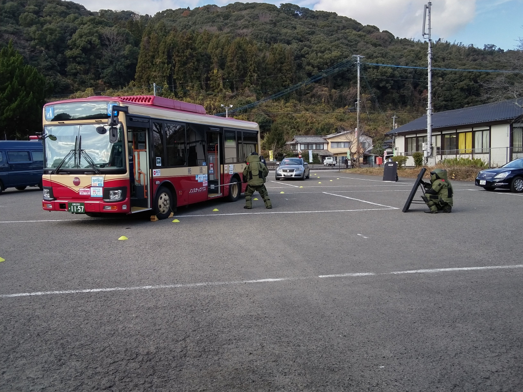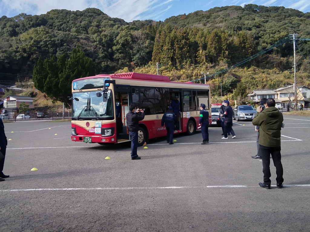 祐徳自動車株式会社と佐賀県鹿島警察署は、昨今、京王線、小田急線及び九州新幹線等など相次ぐ列車内での事件を受け、利用者が増える年末年始を前に、乗合バス内における不審者等に対する対処訓練を合同で実施しました。