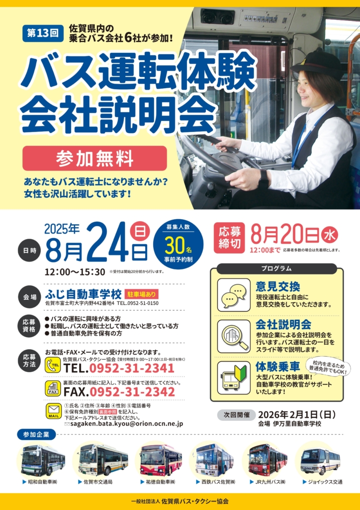 申込先:一般社団法人 佐賀県バス・タクシー協会